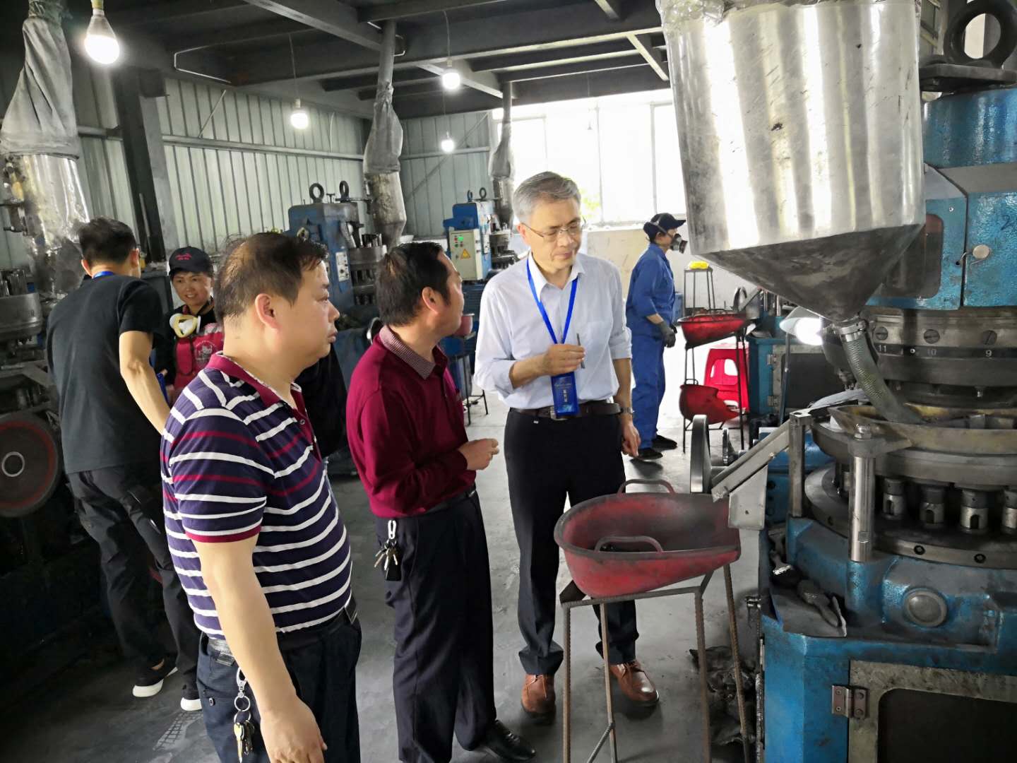 華中科技大學(xué)材料科學(xué)與工程學(xué)院的博士生導(dǎo)師張祥林教授作為我公司技術(shù)顧問,在會(huì)場(chǎng)與我公司簽約結(jié)對(duì)后,就迅速來到生產(chǎn)現(xiàn)場(chǎng)進(jìn)行實(shí)地考察,并將一副受損嚴(yán)重的催化劑成型模具作為樣本帶走,表示回去后將盡快找出麿損原因,研究改進(jìn)方案。